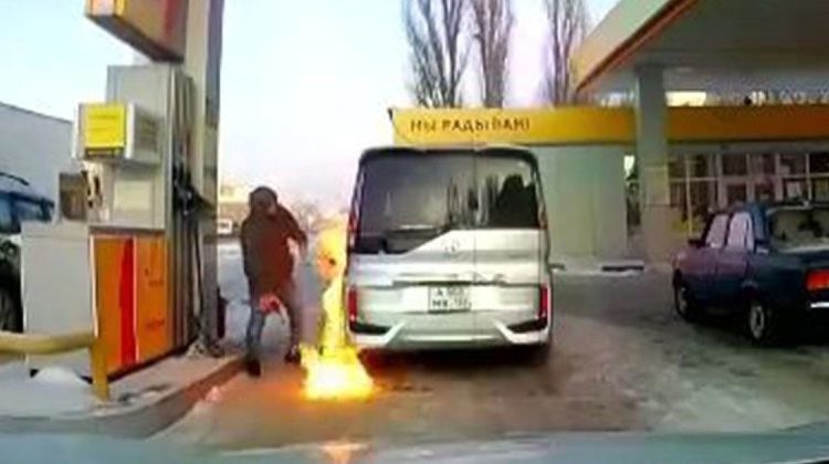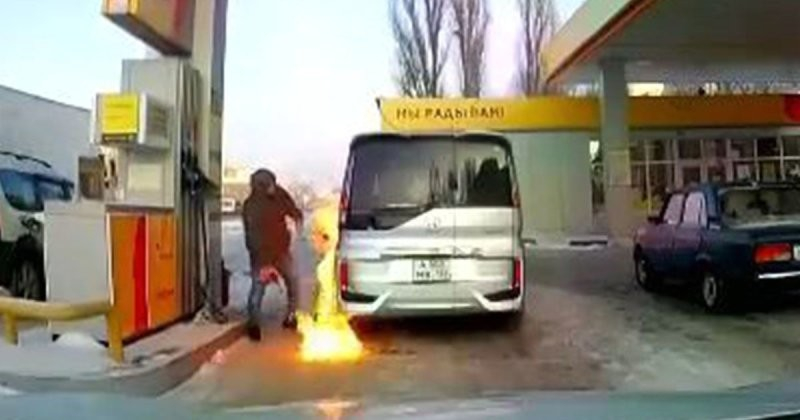 Глупый водитель решил посветить в бензобак зажигалкой! О чём он вообще только думал!?